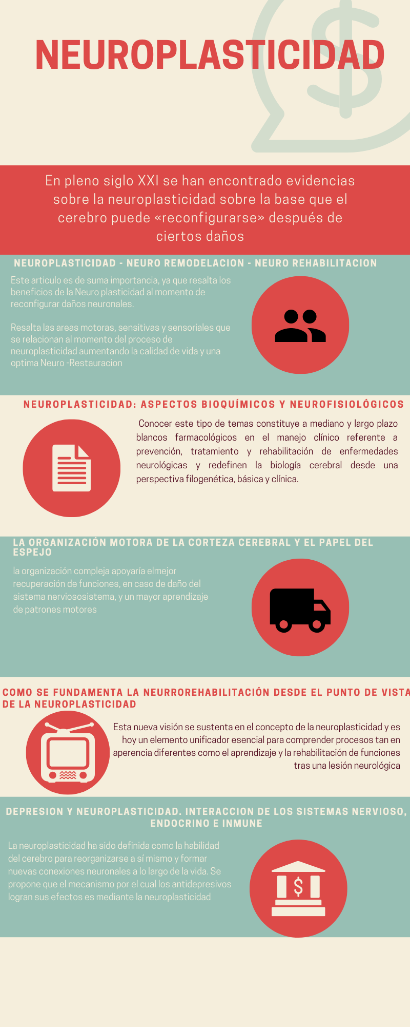 Resumen del texto: El sistema nervioso es un sistema cerrado pero, a la vez, muy dinámico, que asimila, reorganiza y modifica los mecanismos biológicos, bioquímicos y fisiológicos que posee. Esta capacidad se denomina neuroplasticidad e implica cambios en el tejido neural que incluyen regeneración axonal, colateralización, neurogénesis, sinaptogénesis y reorganización funcional, entre otros mecanismos. Dichos mecanismos emplean neurotransmisores como el N-metil-D-apartato (NMDA), el ácido gama-aminobutirico (GABA), la acetilcolina o la serotonina, involucrados en la potenciación o depresión sináptica a corto o largo plazo, la cual puede durar horas o días, sostenida por segundos mensajeros como el AMP cíclico, cuyos efectos pueden ser transitorios o permanentes. Estos efectos son la base de la neuromodulación. Esta última genera cambios a largo plazo en la actividad metabólica neuronal y su respuesta a diversos estímulos eléctricos, magnéticos o químicos, empleados en la neurorrehabilitación clínica. Dicha neurorrehabilitación es una intervención necesaria en, al menos, el 75% de los pacientes que han padecido un insulto neural, cuyo fundamento es la recuperación funcional del paciente. Por esto, la responsabilidad de los neurólogos clínicos, los neurocirujanos, los pediatras, los neuropediatras, los ortopedistas, los siquiatras y los cirujanos en general, entre otros profesionales de la salud, debería ser no solo proveer un diagnóstico y suministrar un tratamiento médico o quirúrgico, sino reorientar al paciente hacia un programa formal de neurorrehabilitación, liderado por especialistas en el área, en el que le ayudarán a alcanzar una apropiada funcionabilidad, una óptima neurorrestauración y una adecuada calidad de vida, incluyendo la de sus correspondientes familias. | |